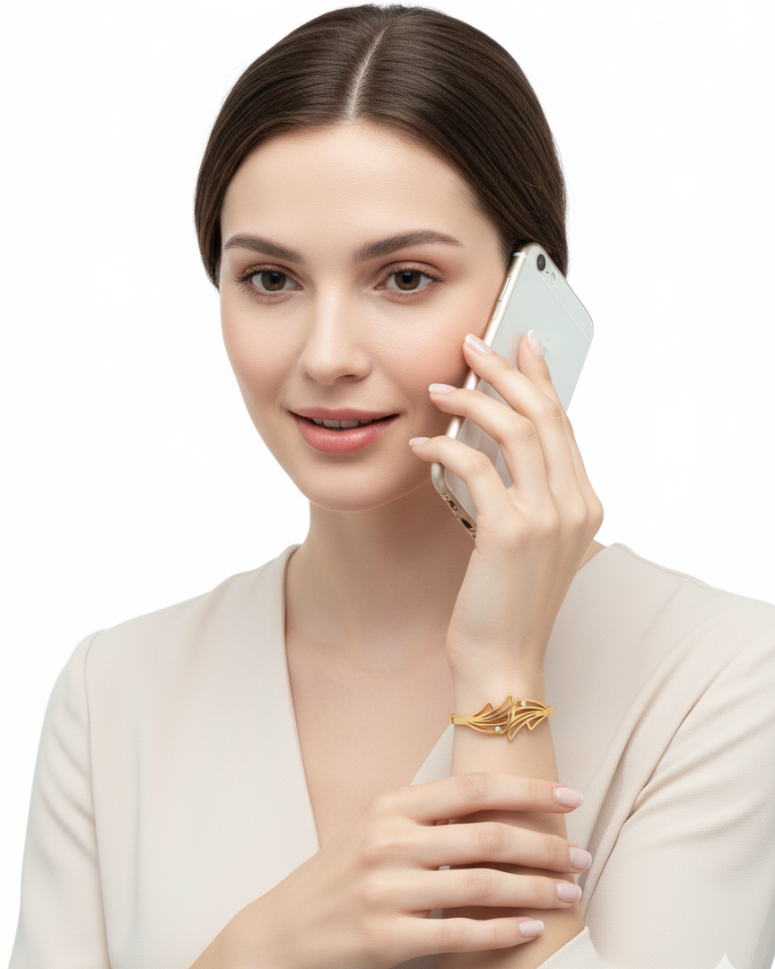 Elevate your jewelry collection with this stunning Artistic Abstract Gold Plated Bracelet, meticulously crafted for those who demand both style and durability. Featuring premium American diamond accents that sparkle with timeless brilliance, this piece combines artistic design with practical elegance. The anti-tarnish coating ensures your bracelet maintains its lustrous finish for years, while the hypoallergenic construction makes it ideal for sensitive skin. Never fade technology preserves the vibrant gold plating, keeping your accessory looking freshly polished through daily wear. Perfect for layering or wearing solo, this versatile bracelet transitions seamlessly from casual to formal occasions.