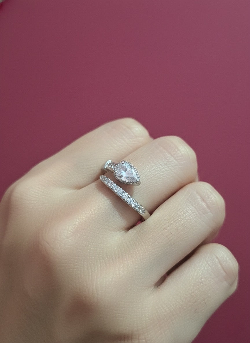 Promise Wrap Ring with Zirconia Diamond & Silver Rhodium Plated.