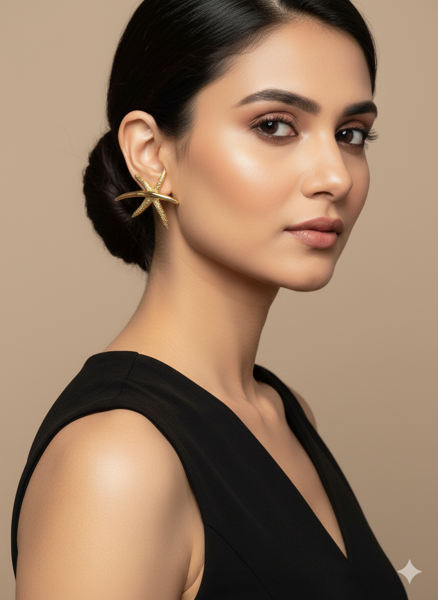 Elevate your jewelry collection with these exquisite Starfish Earrings, crafted with premium 18k gold plating for a luxurious finish. Designed with anti-allergic properties, these earrings are gentle on sensitive skin and resist tarnishing, ensuring they maintain their radiant brilliance for years. The American Diamond accents add sophisticated sparkle, while the durable construction guarantees long-lasting wear. Perfect for both everyday elegance and special occasions, these starfish-inspired pieces combine timeless design with reliable quality. Experience jewelry that's as enduring as it is beautiful.